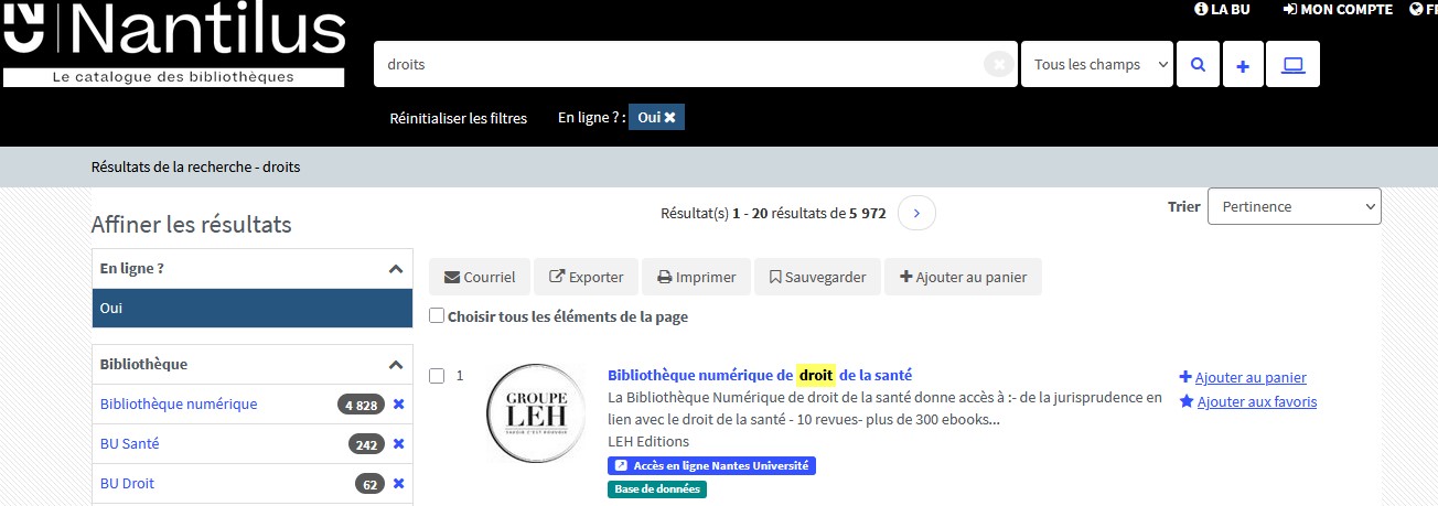 Si vous ne trouvez pas la ressource qui vous intéresse dans Nantilus, c’est que la BU n’y est pas abonnée.