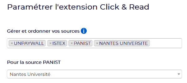 Dans les paramètres de l’outil, choisir les sources Unpaywall, Istex, Panist et Nantes Université pour accéder en quelques clics à toute la documentation en ligne disponible pour les membres de Nantes Université.